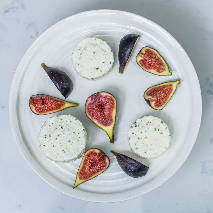 Sprid ut din Boursin på alla tre nivåerna och lämna mycket utrymme mellan ostarna. Använd olika storlekar. Nu är det dags att lägga till de andra viktiga delarna. Fikon är inte bara supergoda, de är vackra också. Skär upp dem och servera tillsammans med honung och ost. Tillför djup genom att lägga till ett par skivor lufttorkad skinka eller korv. Strössla tranbär över ostbrickan för att skapa en vacker och färgstark kontrast.