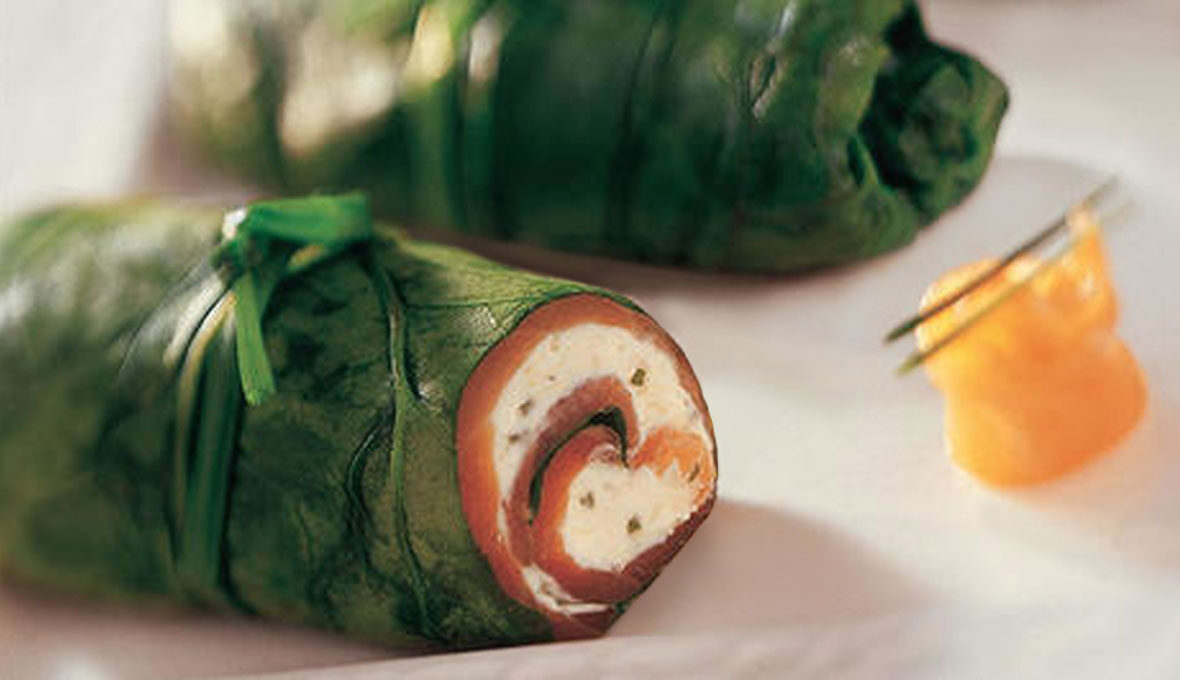 Vill du göra rullar för barn? Byt ut den rökta laxen med kokt skinka och spenatbladen med stora salladsblad. Precis lika god som det ursprungliga receptet.
